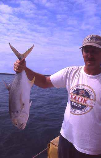 | Tom holds up a nice amberjack that we caught on the handline. |