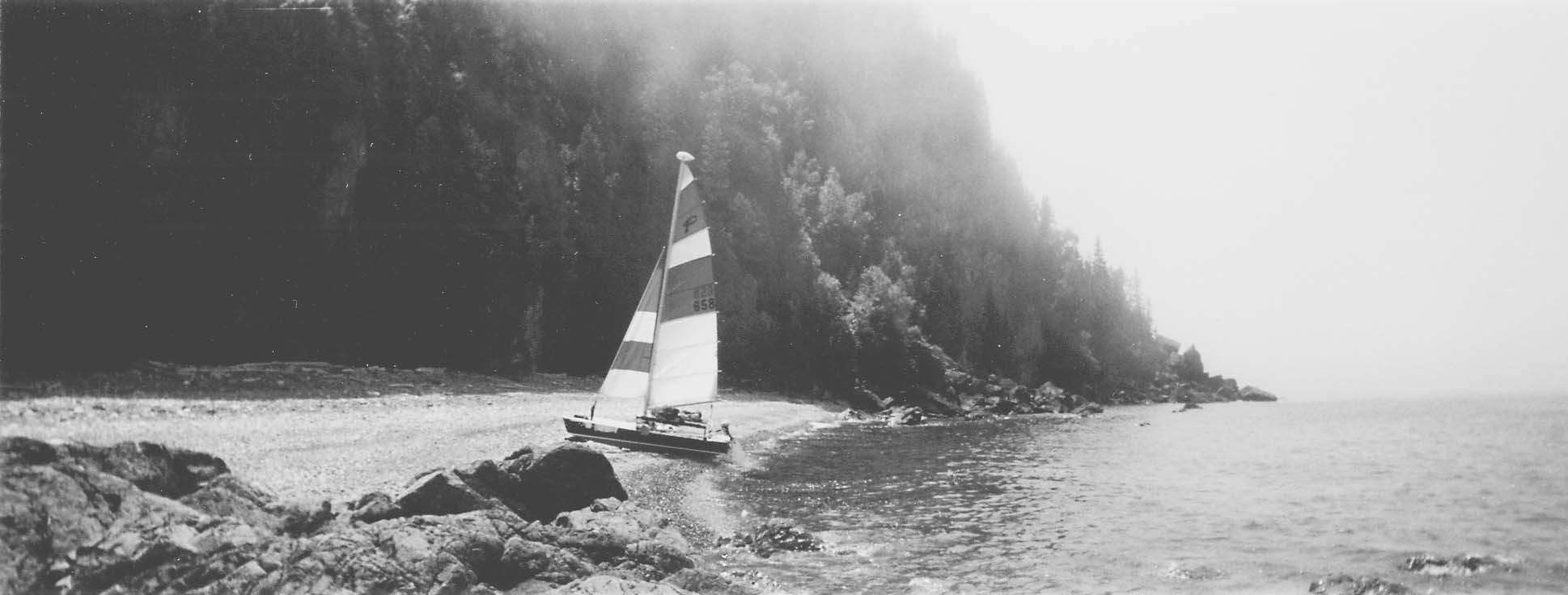 A couple of days later they were near Rossport, Ontario, when a cloud that looked like a giant tidal wave was bearing down on them. With no time to get the sails down, Carl turned the boat downwind. “When it hit us, we were catapulted ahead at incredible speed. It was like we were on ice skates,” Behrend said. Luckily, there were two small islands just ahead where we were able to pull in on the leeward side and wait out the storm.