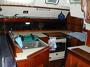 rack. The galley is large enough to cook in but snug enough to stay secure