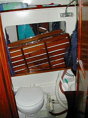 underneath, a hanging locker and two cabinets. It is followed by the head